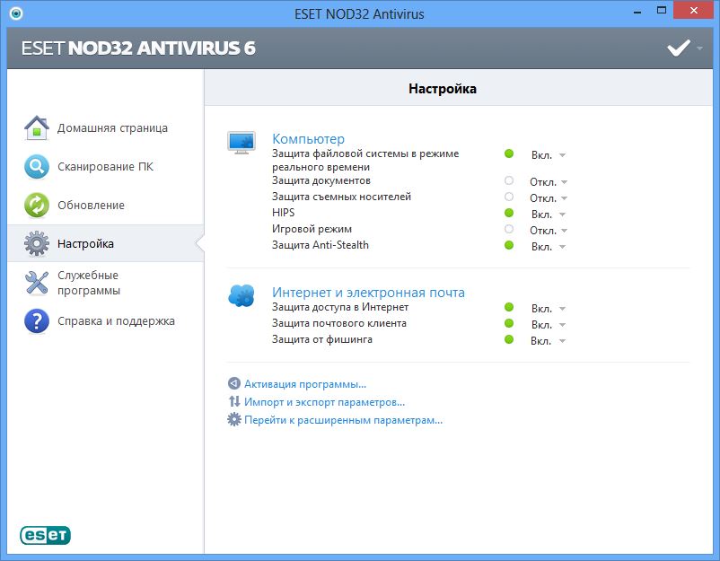 ESET NOD32 Антивирус – решение для защиты домашнего компьютера от вирусов, троянских программ, червей, рекламного ПО, шпионских программ, фишинг-атак, руткитов.